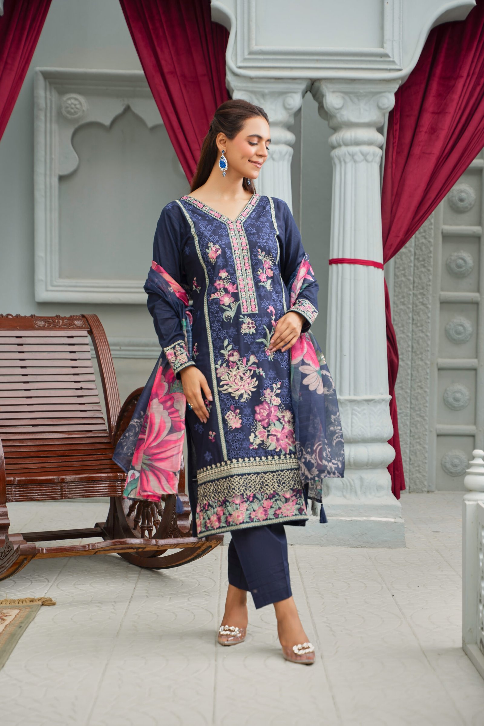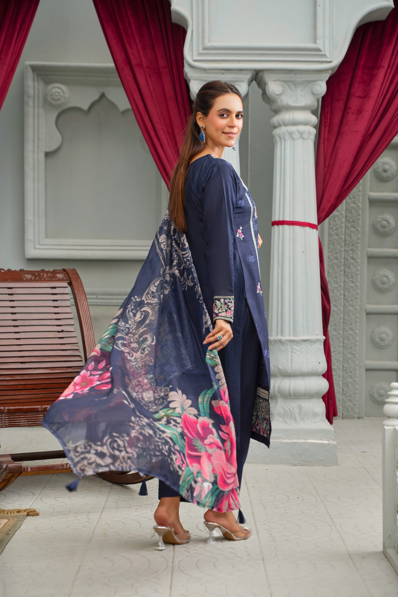 Radiate charm and sophistication with the Noor Collection, where tradition meets modern elegance. This cotton outfit is beautifully adorned with delicate chikankari and intricate thread embroidery, highlighted by gleaming golden tilla work that makes it truly stand out. The shirt comes paired with a sleek dyed trouser, offering both comfort and style, while the flowy printed monark dupatta adds a touch of grace and freshness to the look. A perfect harmony of artistry and elegance, this ensemble is designed to make every moment unforgettable.